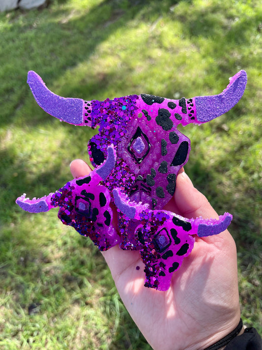 Silver glitter with neon green fringe Aztec Bull Skull