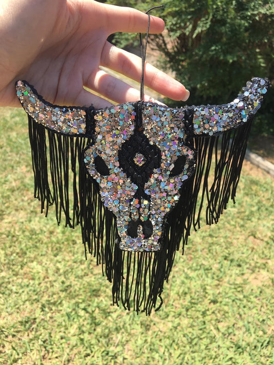 Black Skull with Silver Chunky Glitter